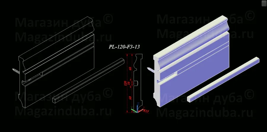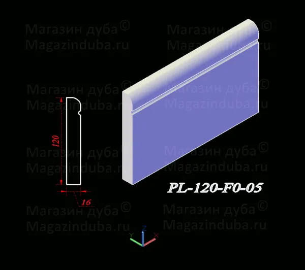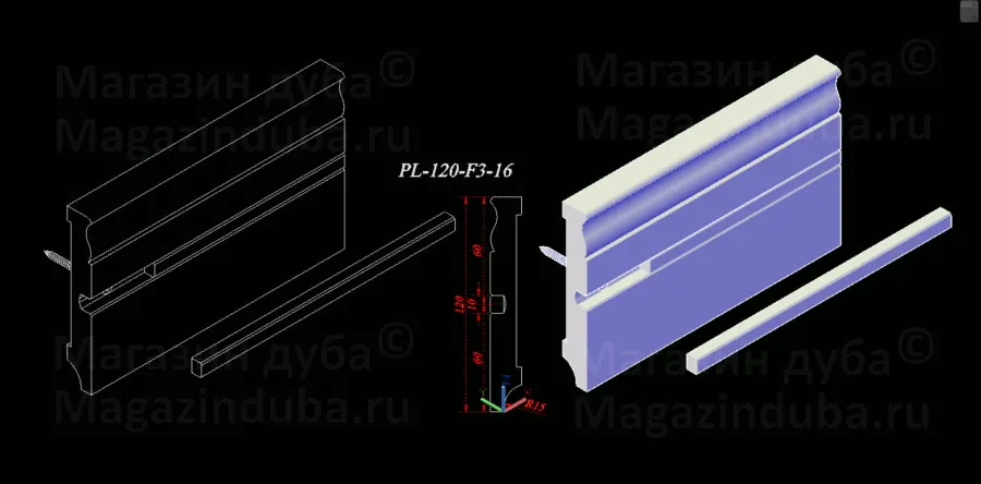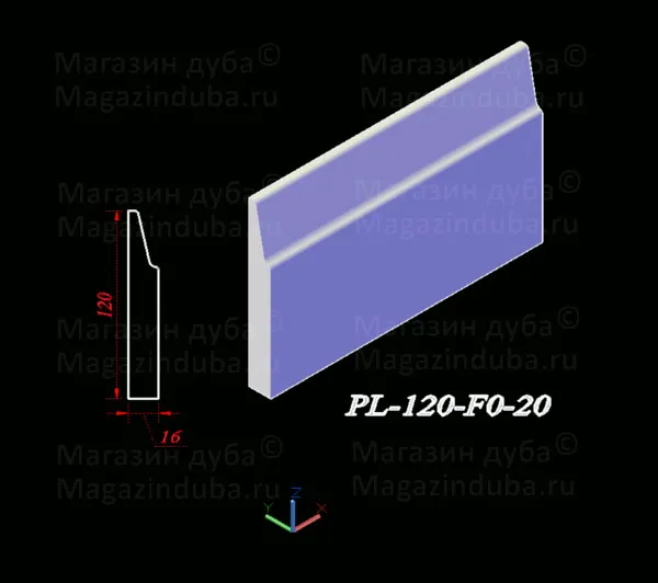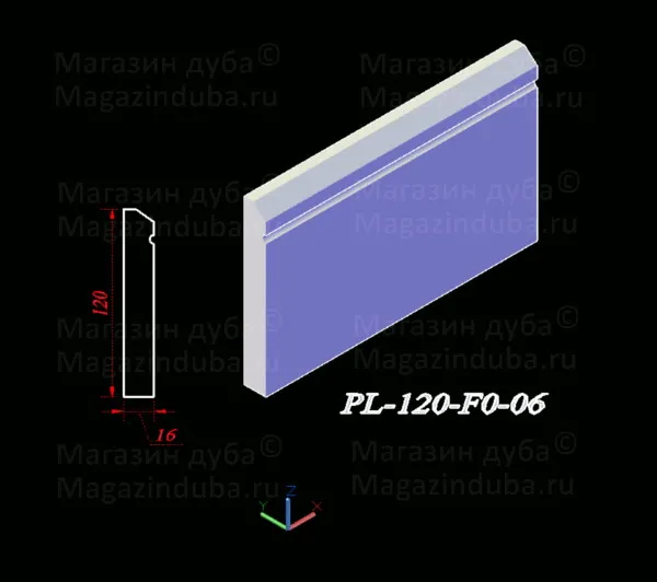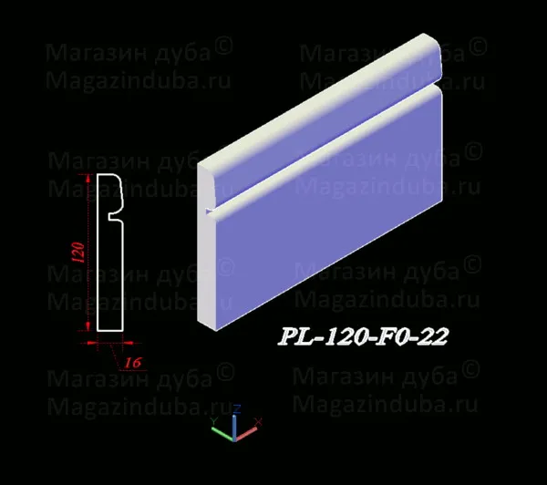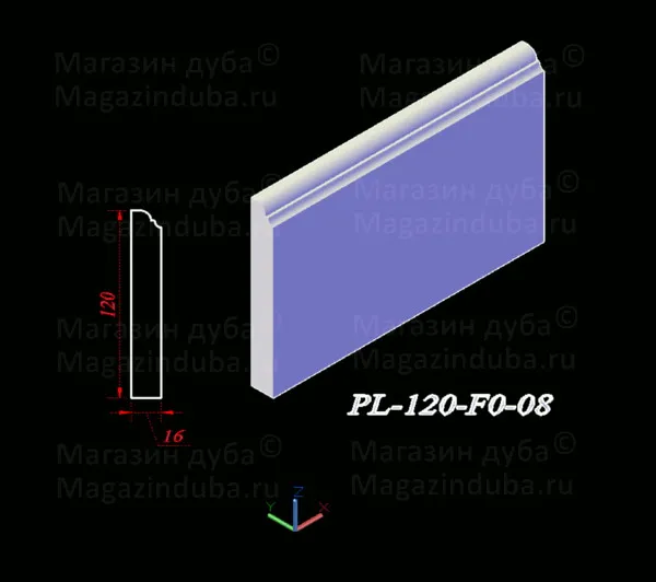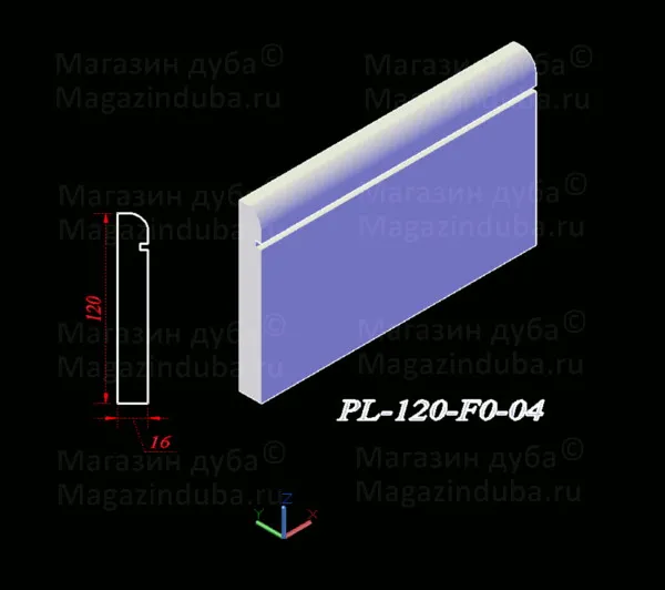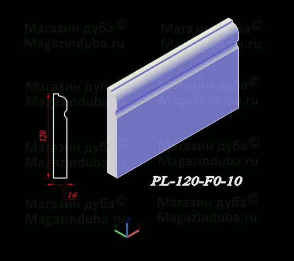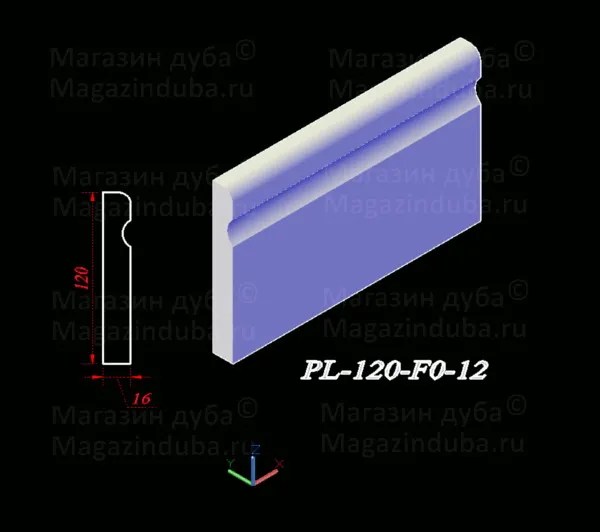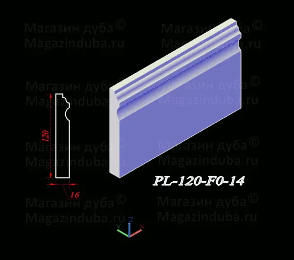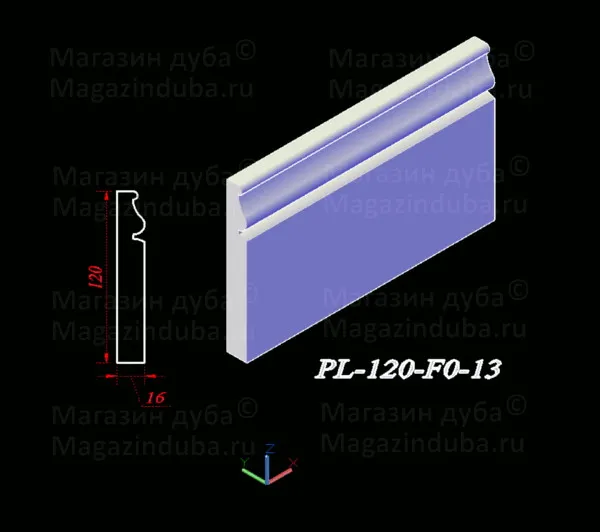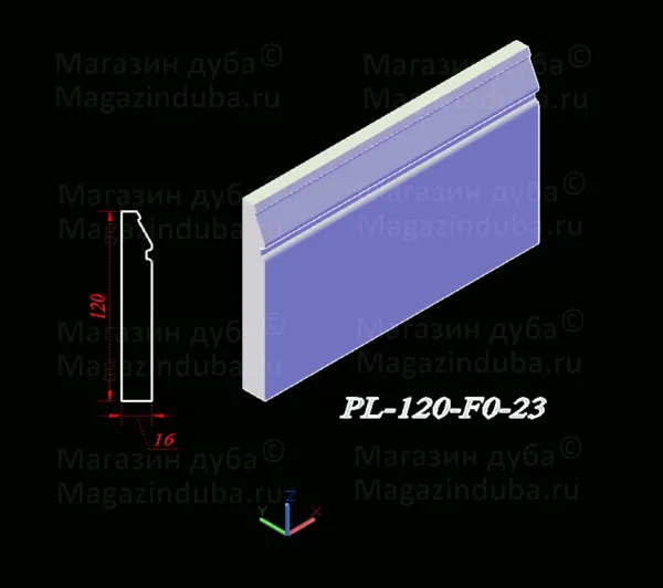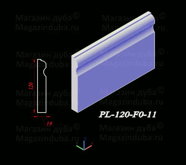 Ниже приведены варианты сечений плинтуса из МДФ размером 120 на 16 мм, стоимость плинтуса другого размера - ниже в таблице. Также возможно изготовление по собственным размерам заказчика, цена рассчитывается индивидуально. Длина хлыста - 2800 мм. Толщина: 10, 16, 18, 22 мм. Ширина - от 80 мм.