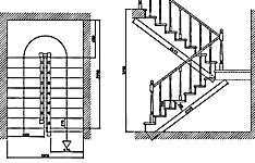 - лестница двух маршевая П – образная с поворотом на 180 градусов через площадку. На косоурах, с подступенками, ограждение деревянное по одной стороне, с балясинами.