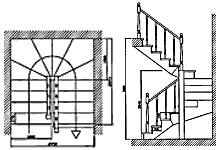 - лестница двух маршевая П – образная с поворотом на 180 градусов через забежные ступени. На косоурах, с подступенками, ограждение деревянное по одной стороне, с балясинами.