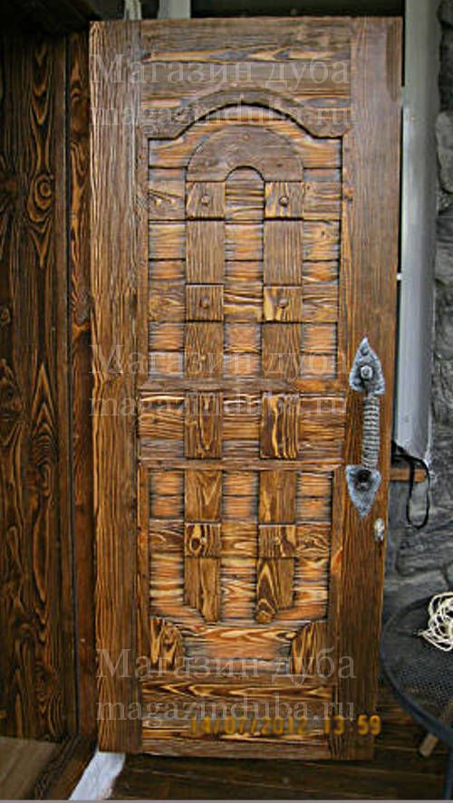 Двери из состаренной сосны выглядят очень эффектно. При этом они прочны, долговечны, красивы.